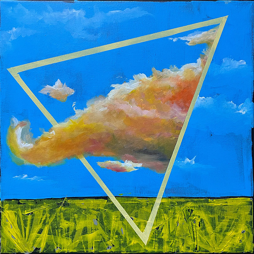 A series of abstract paintings titled "Cloud Geometry"